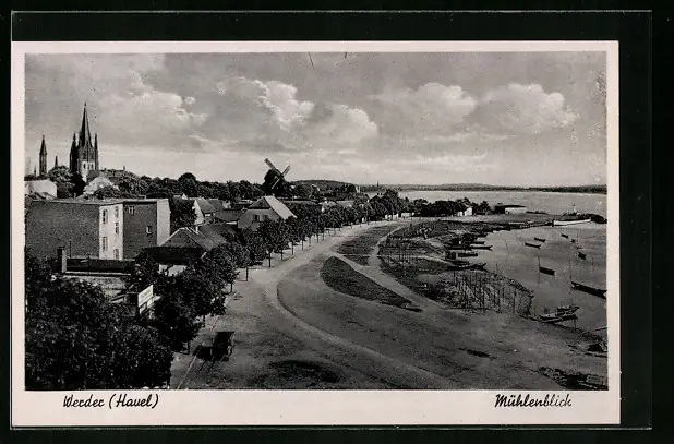 AK Werder /Havel, Ortsansicht mit Mühlenblick