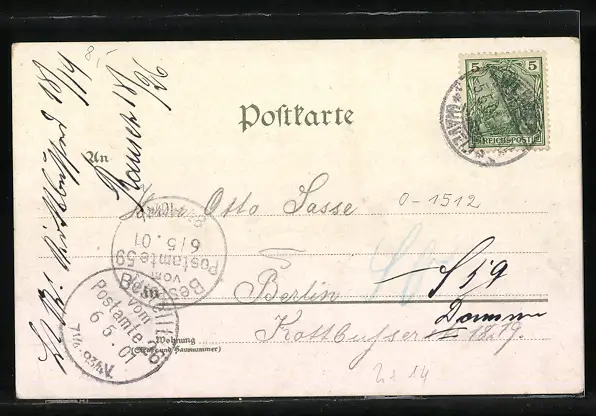 alte Ansichtskarte, gelaufen 1901, guter Zustand