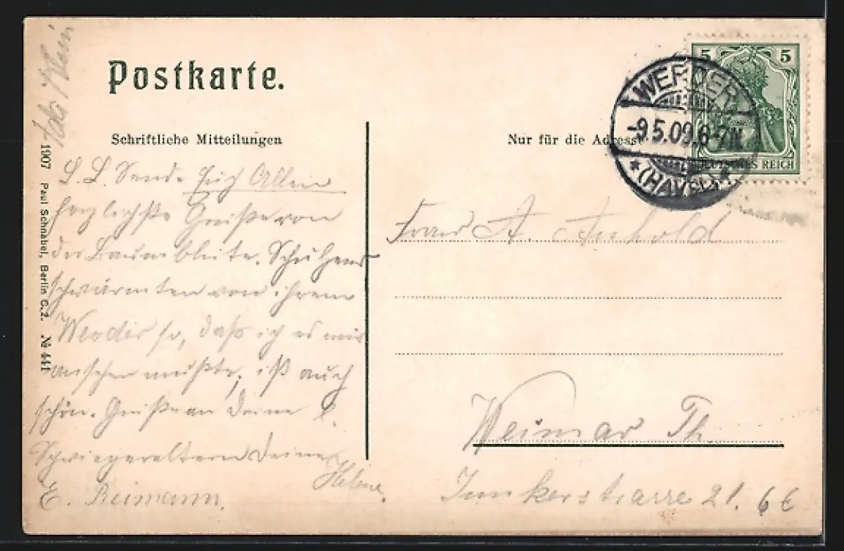 alte Ansichtskarte, gelaufen 1909, guter Zustand