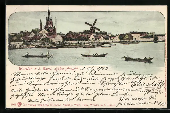 AK Werder a. d. Havel, Hafen-Ansicht mit drei Ruderbooten