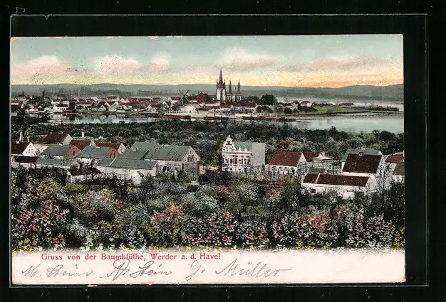 AK Werder an der Havel, Ortsansicht in der Baumblüte