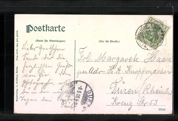 alte Ansichtskarte, gelaufen 1905, Stempelspur, guter Zustand