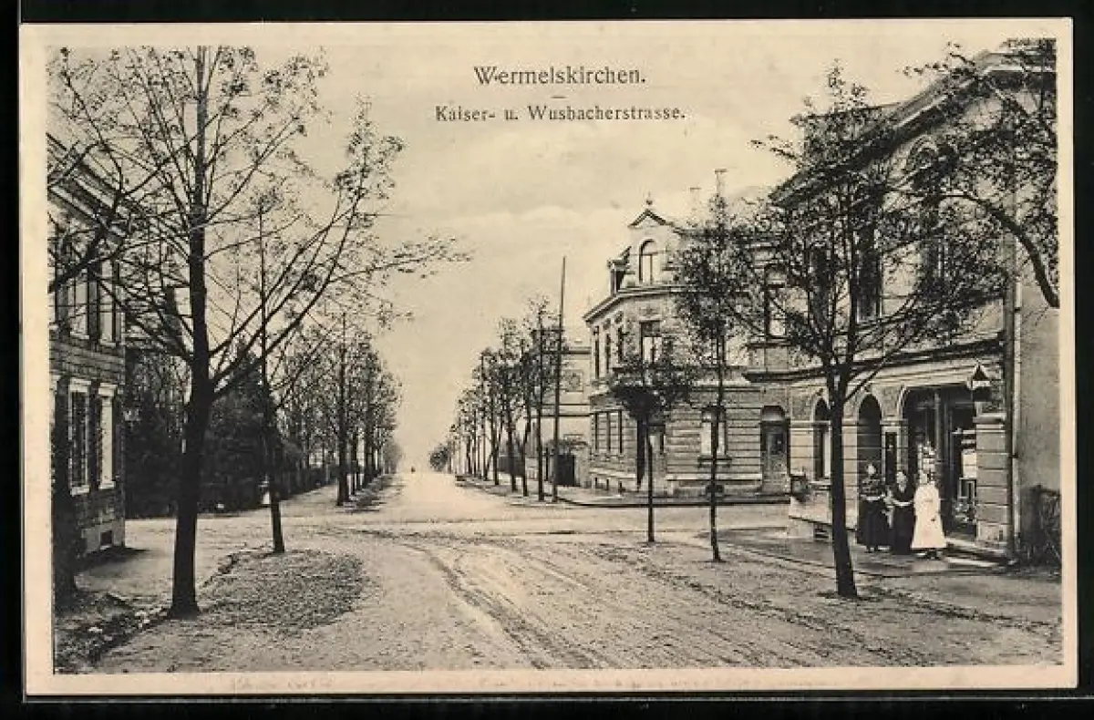 AK Wermelskirchen, Kaiser- und Wusbacherstrasse mit Grünanlagen