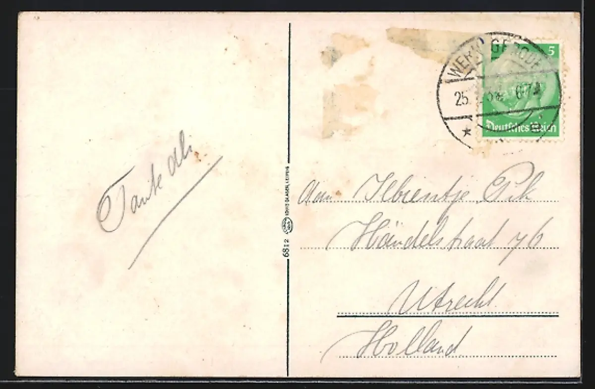 alte Ansichtskarte, gelaufen, Bugspur mittig re., guter Zustand