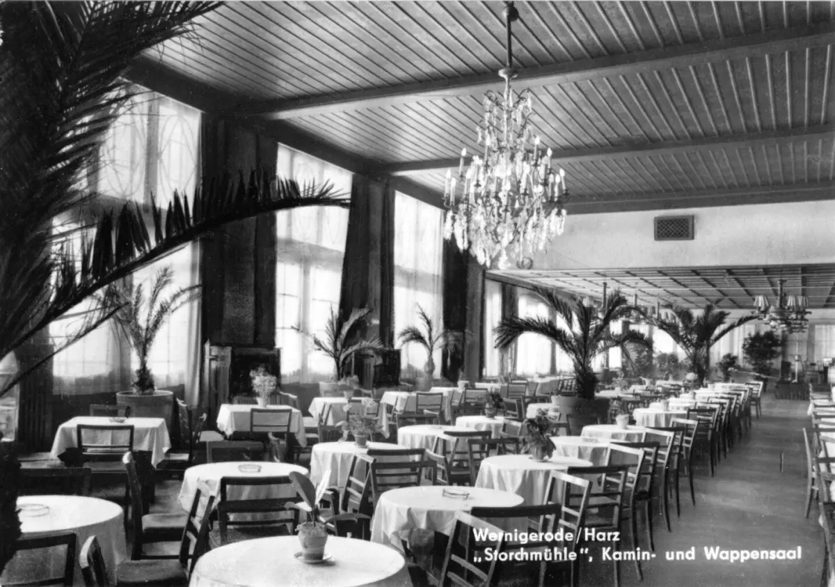 Ansichtskarte Wernigerode Harz "Storchmühle", Kamin- und Wappensaal Erhaltung I ungelaufen Druckvermerk: 1966 Herstellungsland: DDR Verlag: E. Riehn, Wernigerode Harz - 384
