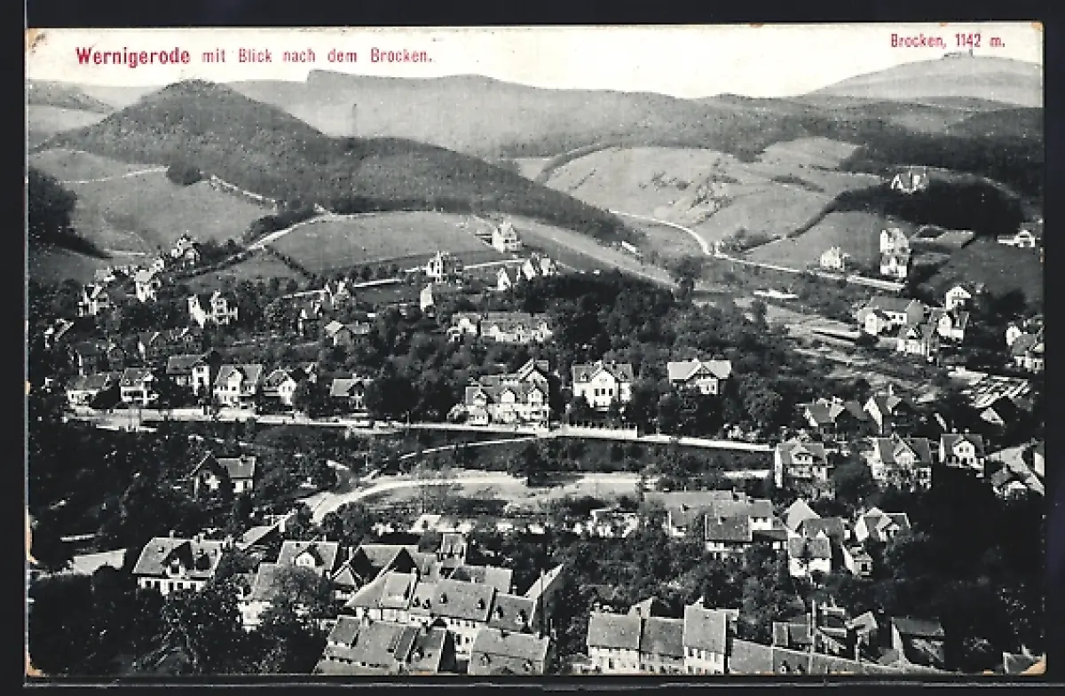 AK Wernigerode, Ortsansicht mit Blick nach dem Brocken