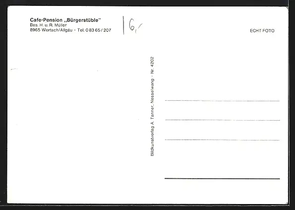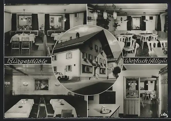 AK Wertach /Allgäu, Café-Pension Bürgerstüble der Eheleute Müller, mit Innenansichten