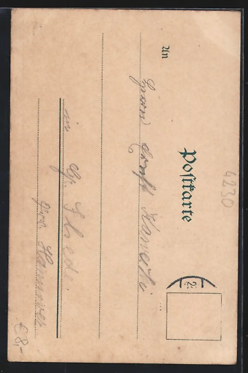 alte Ansichtskarte, gelaufen, Briefmarke entfernt, Stempelspur, guter Zustand