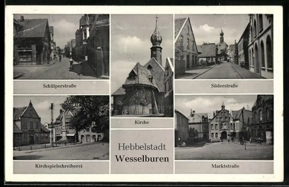 AK Wesselburen, Kirche, Marktstrasse, Kirchspielschreiberei
