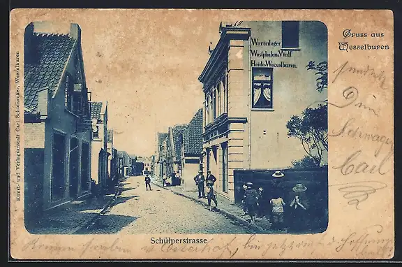 AK Wesselburen, Schülperstrasse mit Anwohnern