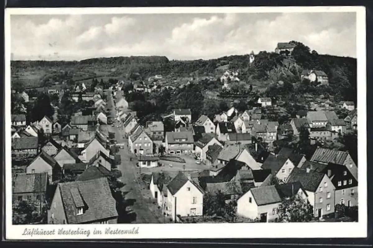 AK Westerburg i. Westerwald, Totalansicht mit Strasse aus der Vogelschau