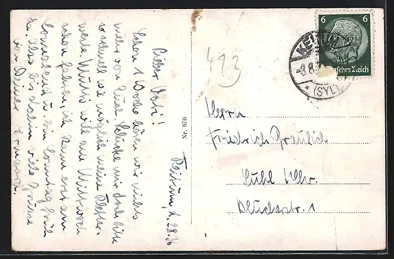 alte Ansichtskarte, gelaufen 1936, Bugspur oberer Rand mittig und unterer Rand links, guter Zustand