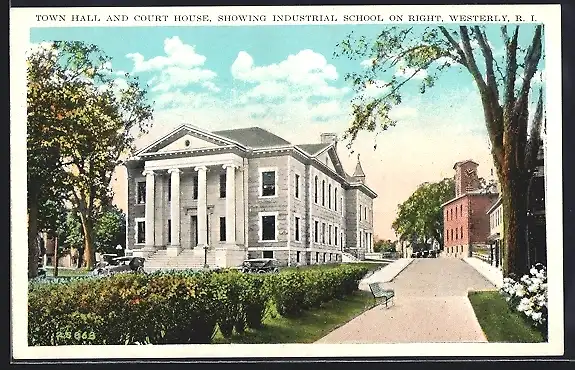 AK Westerly, RI, Town Hall and Court House, showing industrial school on right