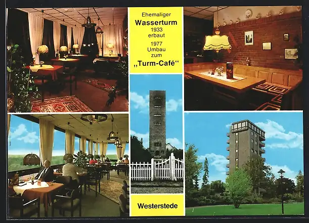 AK Westerstede, Das Turm-Café im ehemaligen Wasserturm, mit Innenansichten