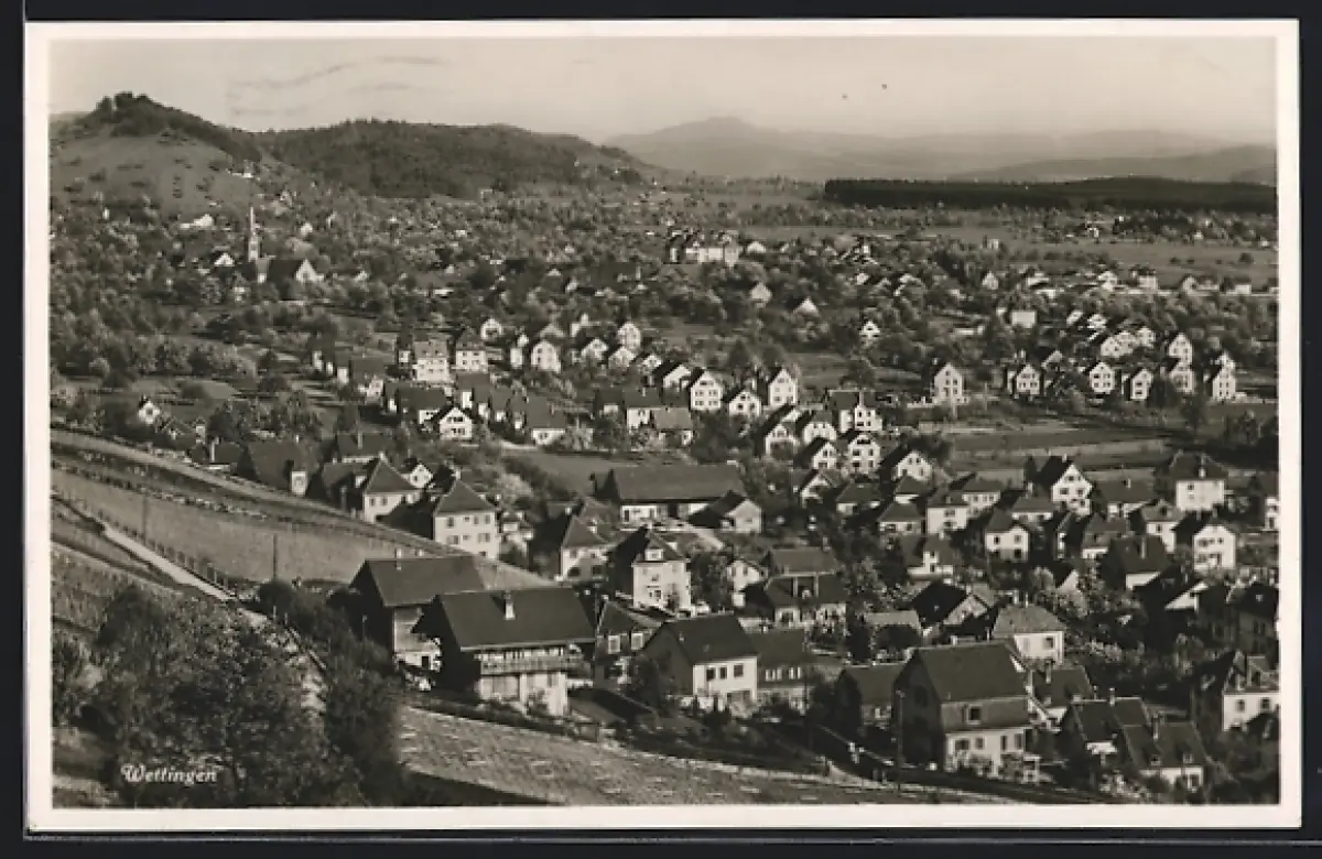 AK Wettingen, Gesamtansicht mit Fernblick aus der Vogelschau