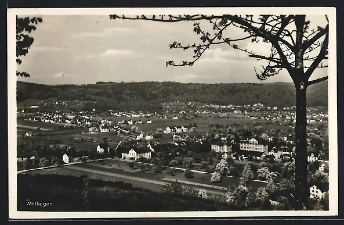 AK Wettingen, Ortsansicht aus der Vogelschau