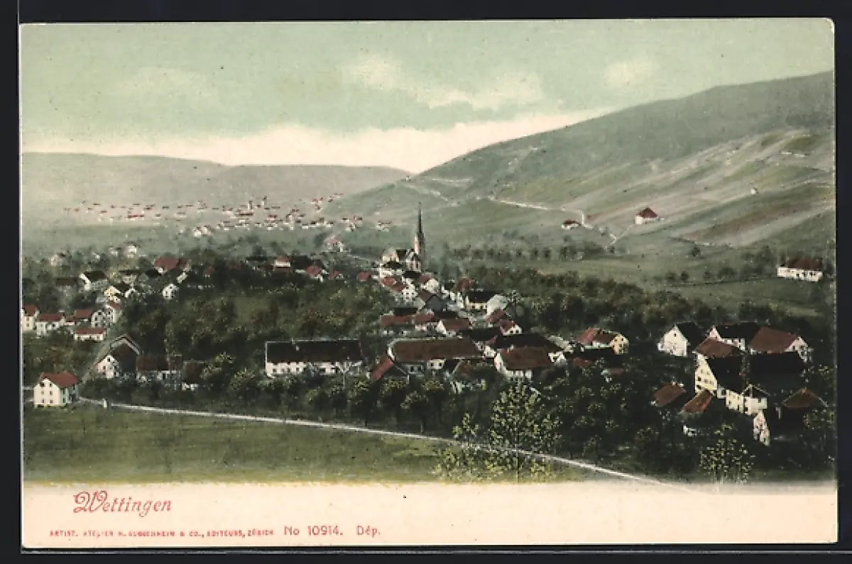 AK Wettingen, Totalansicht mit Nachbarort aus der Vogelschau