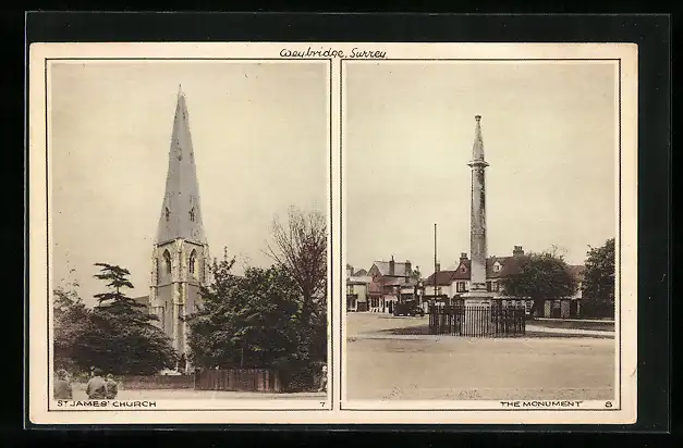 AK Weybridge /Surrey, St. Jame`s Church, The Monument