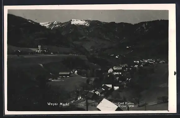 AK Weyer Markt a. d. Enns, Totalansicht von einen Berg aus