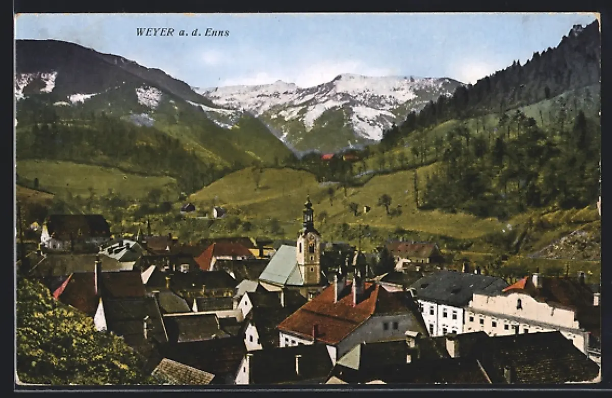 AK Weyer a. d. Enns, Gesamtansicht mit Alpen