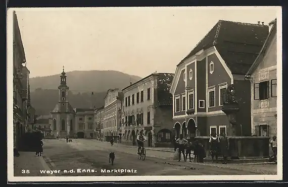 AK Weyer a. d. Enns, Marktplatz mit Brunnen