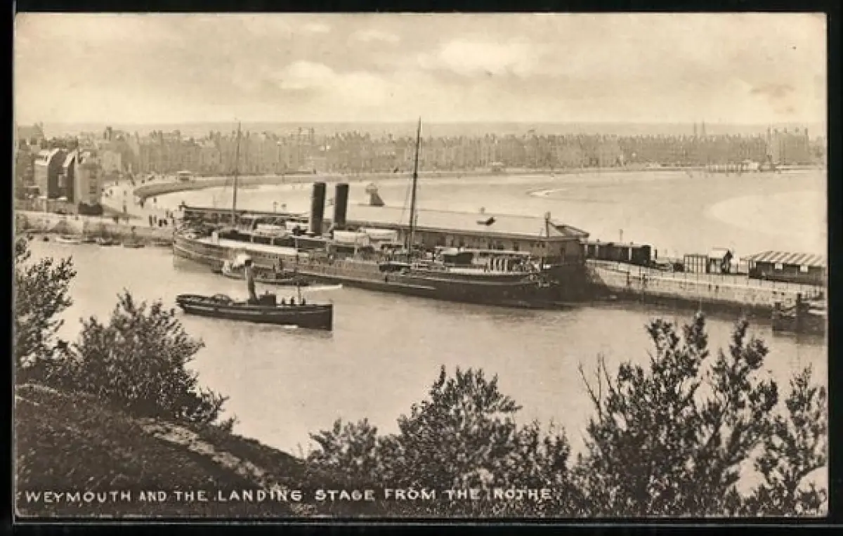AK Weymouth, The Landing Stage from the Nothe, steamer at the jetty