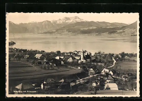 AK Weyregg am Attersee, Ortsansicht aus der Vogelschau