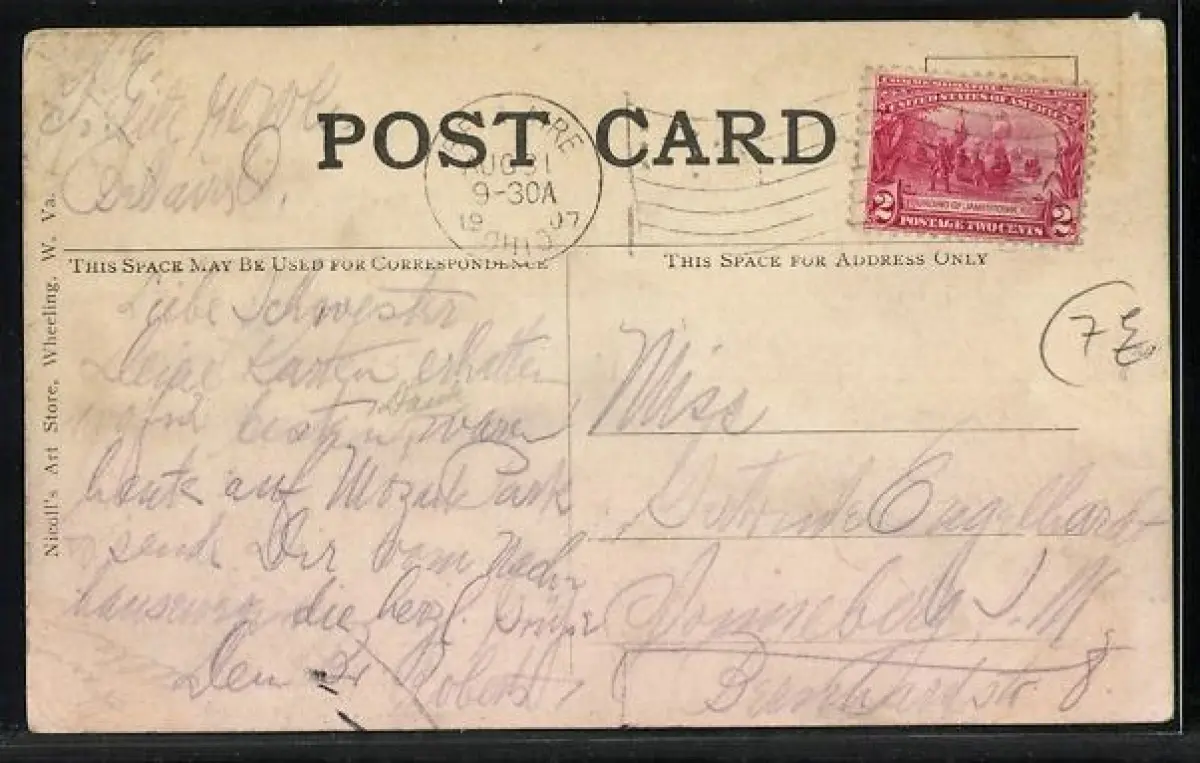 gelaufen 1907, Eckknick rechts unten, guter Zustand