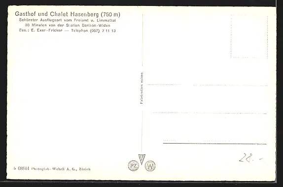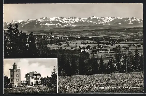 AK Widen, Gasthof und Chalet Hasenberg E. Exer-Fricker, Gesamtansicht mit Bergpanorama