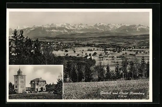 AK Widen, Gasthof und Chalet Hasenberg, Ortsansicht aus der Vogelschau