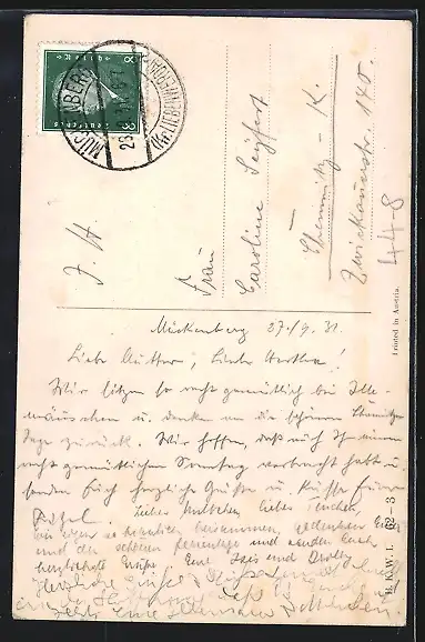 gelaufen 1931, Eckknick unten li., Stempelspur, guter Zustand