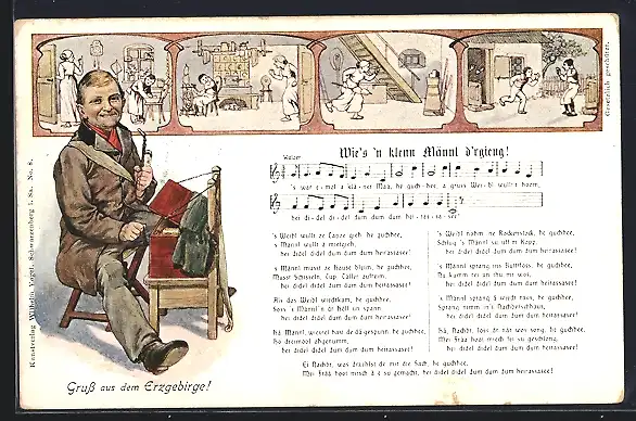 AK Wie`s `n klenn Männl d`rgieng!, Erzgebirgler mit Leierkasten