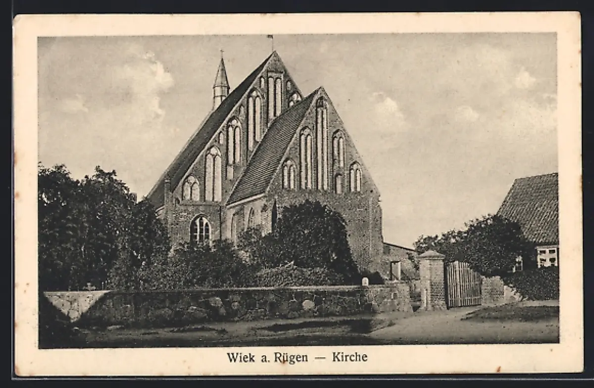 AK Wiek a. Rügen, Kirche mit Strassenpartie
