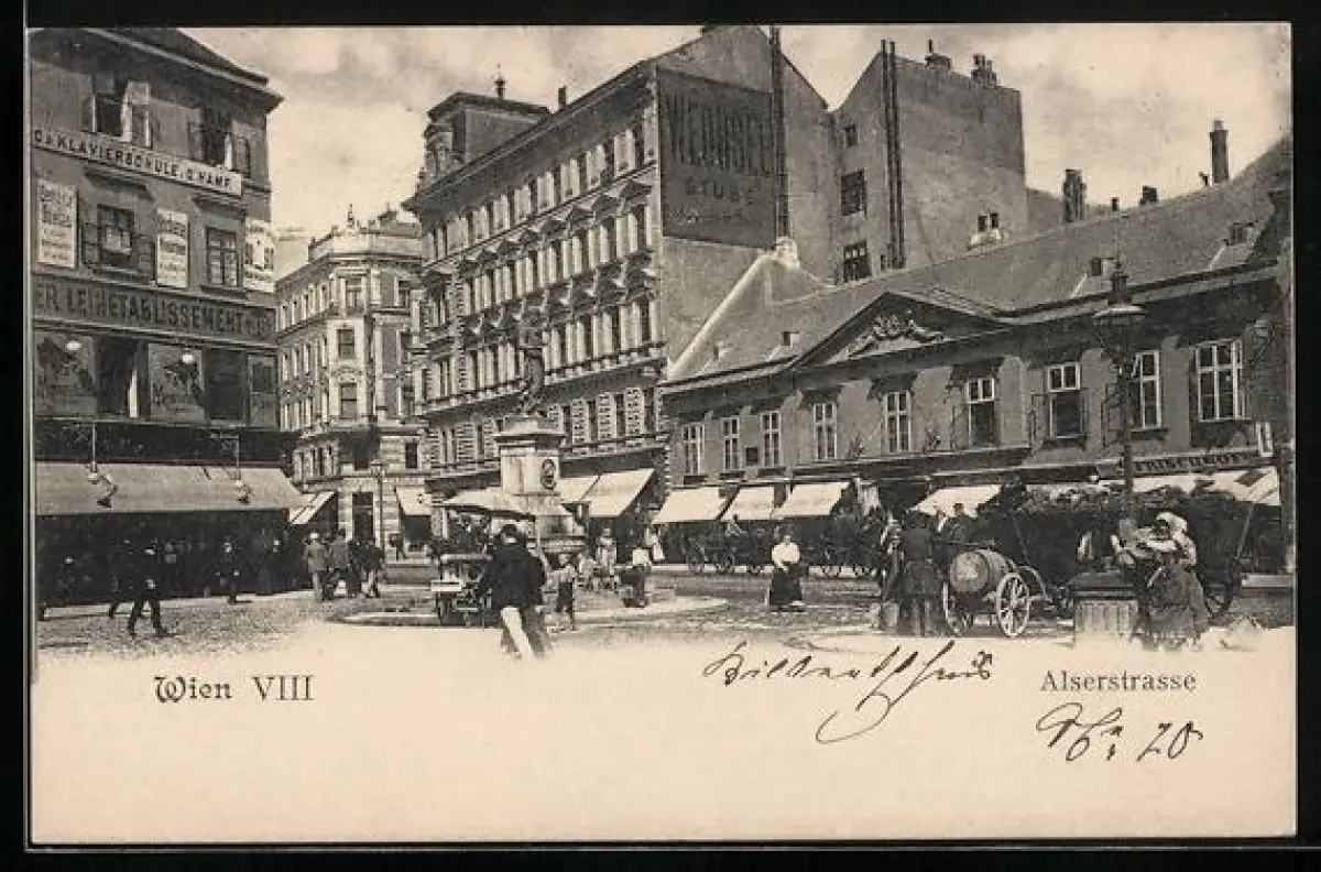 AK Wien, Alserstrasse, Reges Treiben am Denkmal