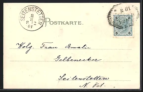 alte Ansichtskarte, gelaufen 1901, Eckknick unten re., guter Zustand