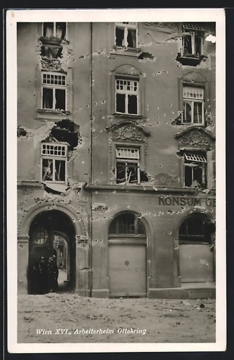 AK Wien, Arbeiterheim Ottakring mit Schusslöchern