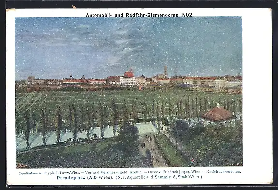 AK Wien, Automobil- und Radfahr-Blumencorso 1902, Paradeplatz