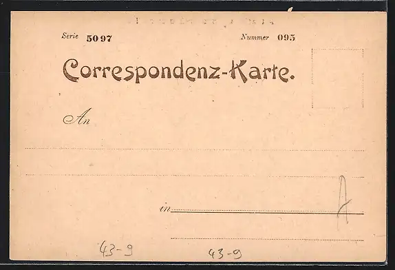 Personenbezogene Daten auf der Rückseite der Karte wurden durch blauen Textmarker unkenntlich gemacht. Die blauen Stellen sind auf die Vorderseite durchgeweicht und wirken sich negativ auf das Postkartenfoto aus