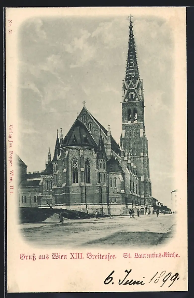 AK Wien-Breitensee, St. Laurentiuskirche mit Strasse