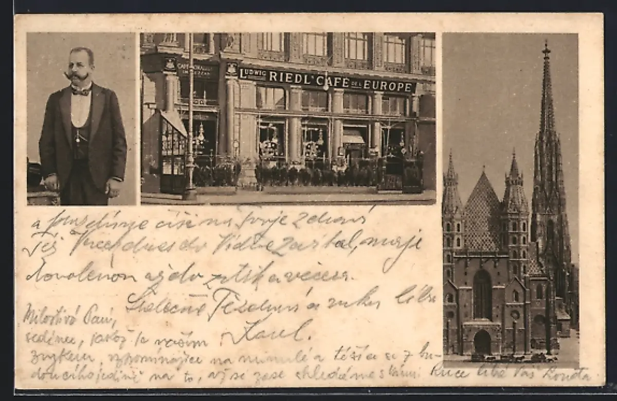 AK Wien, Cafe de l`Europe, Stefansplatz 8, Ludwig Riedl, Kirche