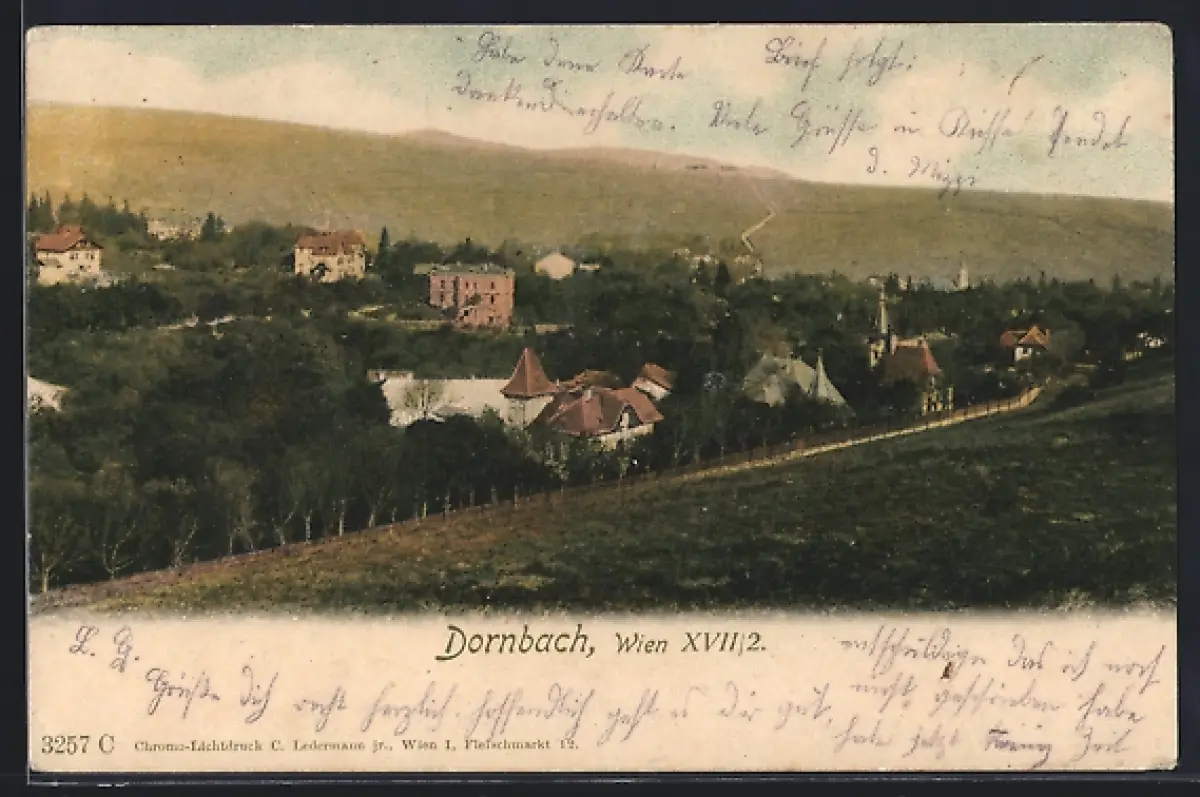 AK Wien, Dornbach, Landstrassenpartie vom Hang aus gesehen
