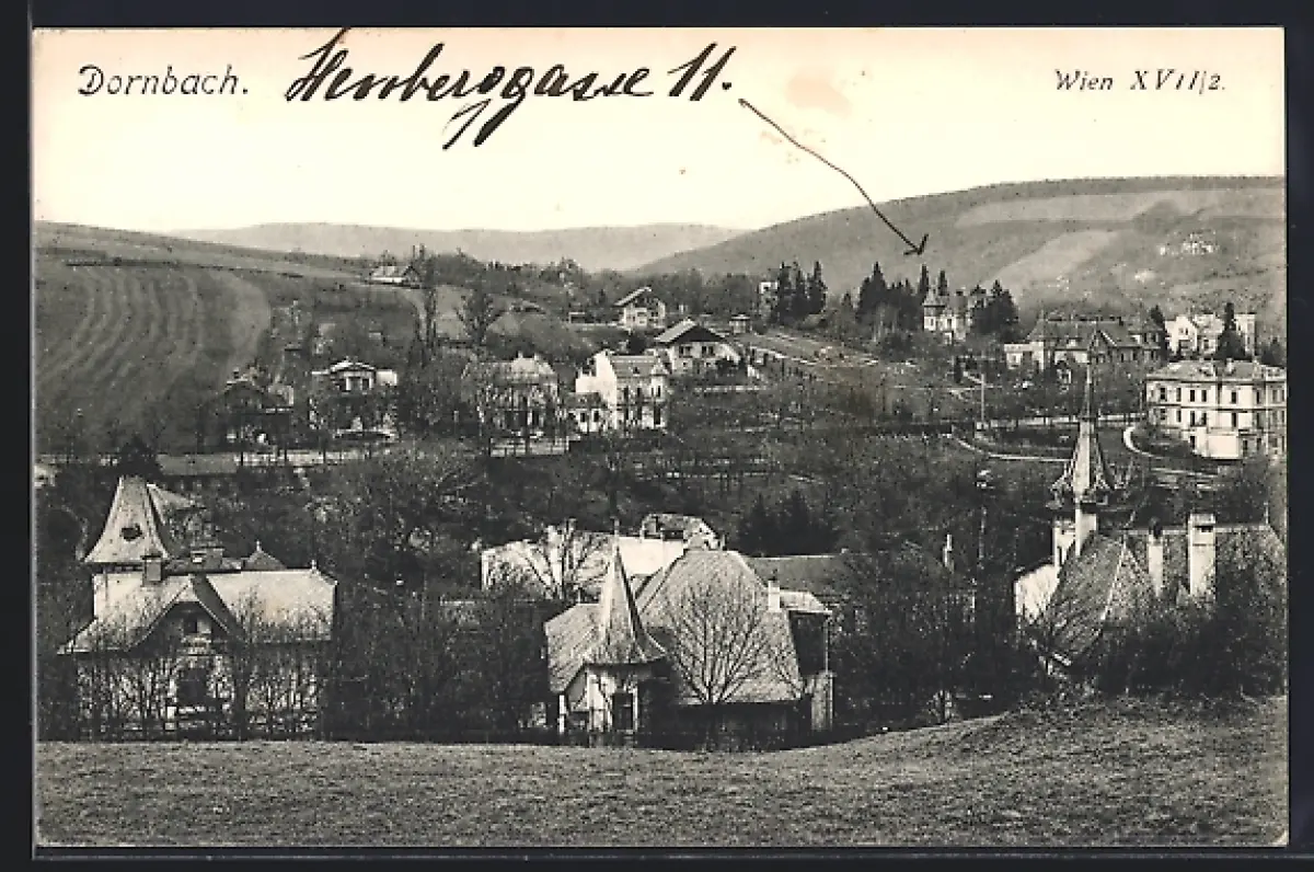 AK Wien, Dornbach, Ortsansicht vom Hügel aus