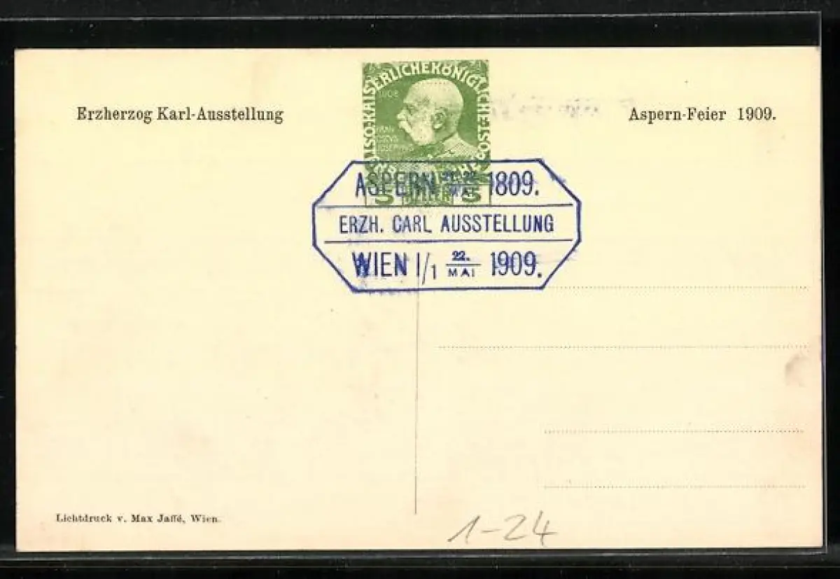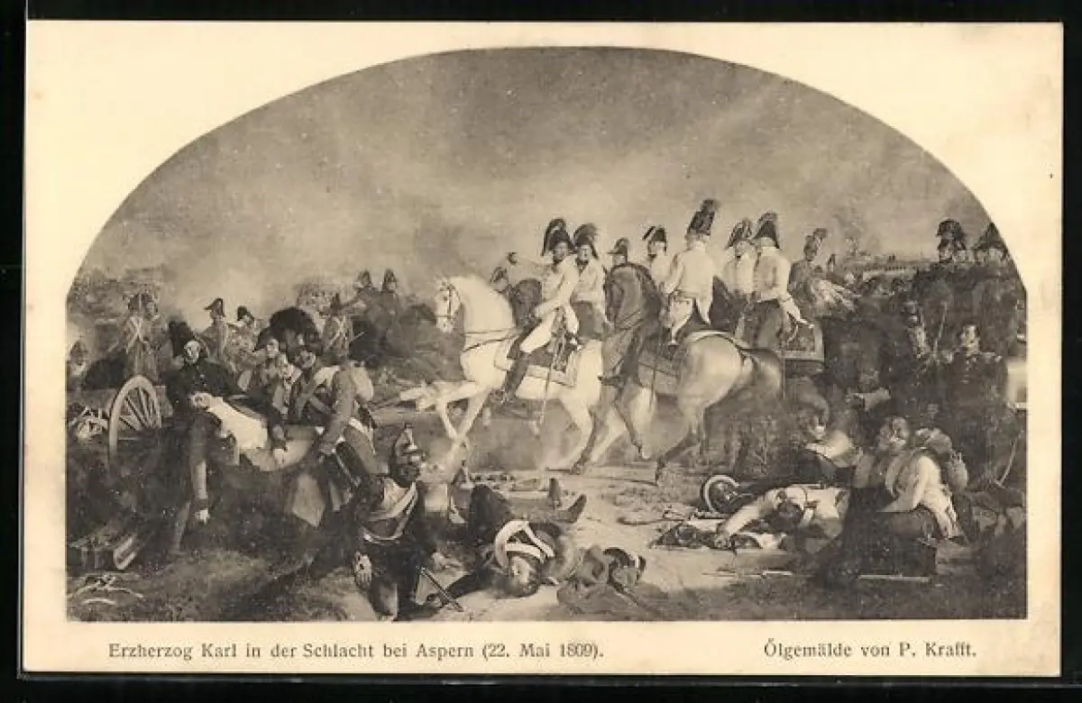 AK Wien, Erzherzog Karl-Ausstellung, Erzherzog Karl von Österreich in der Schlacht bei Aspern, 22. Mai 1809