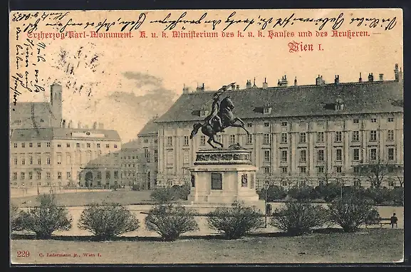 AK Wien, Erzherzog Karl-Monument, k. u. k. Ministerium des k. u. k. Hauses und des Aeusseren
