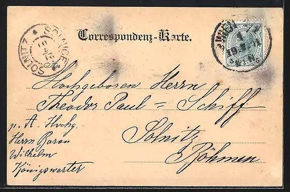 alte Ansichtskarte, gelaufen 1901, Eckknicke oben, Stempelspur, guter Zustand