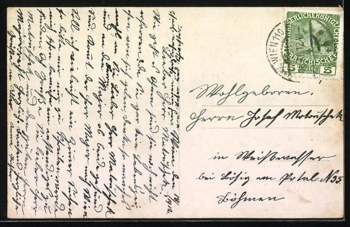 alte Ansichtskarte, gelaufen 1912, Ecken bestoßen, Eckknick unten re., guter Zustand