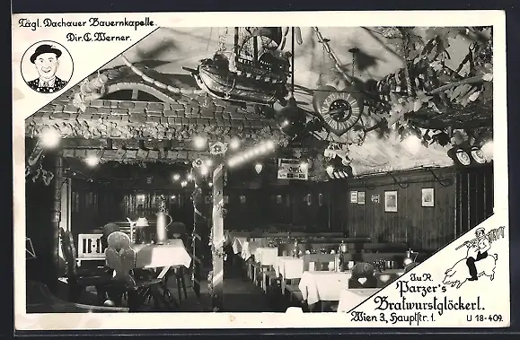 AK Wien, Gasthof Prazer`s Bratwurstglöckerl, Hauptstrasse 1, Speisesaal