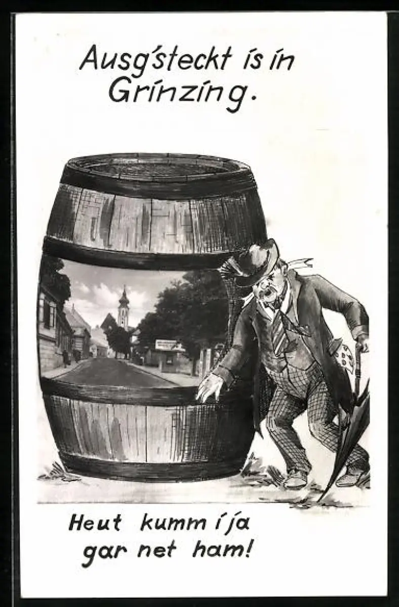 AK Wien-Grinzing, Ausg`steckt is in Grinzing, Heut kumm i ja gar net ham!
