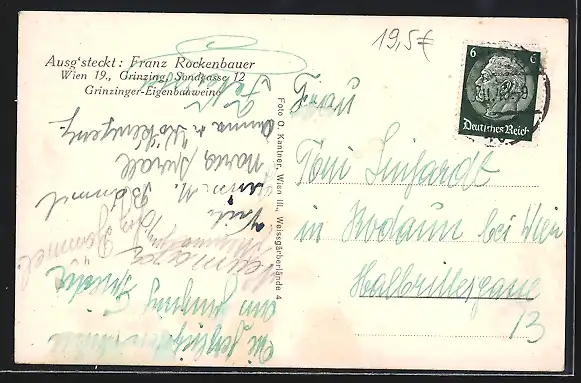 AK Wien / Grinzing, Grinzinger Eigenbauweine, Ausg`steckt: Franz Rockenbauer, Sandgasse 12, Garten