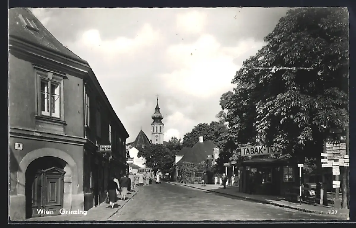 AK Wien, Grinzing, Strassenpartie mit Kiosk